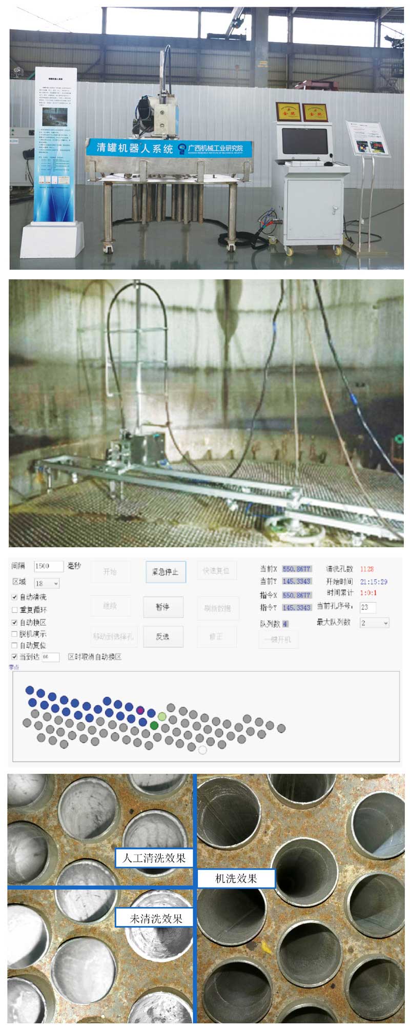我院與廣西上上糖業(yè)有限公司合作開(kāi)發(fā)的全自動(dòng)高壓清洗機(jī)器人系統(tǒng),面向國(guó)內(nèi)外制糖、輕工、食品、化工、制藥等行業(yè),在狹小受限空間、高溫潮濕環(huán)境下,代替人工清洗加熱管積垢,屬世界首創(chuàng),達(dá)到代替?zhèn)鹘y(tǒng)人工作業(yè)方式、減少人員傷亡、提高安全生產(chǎn)率和提升清洗質(zhì)量的目的。