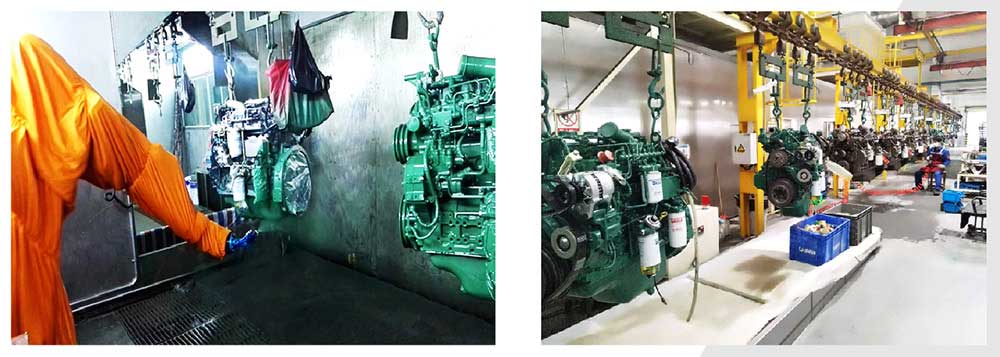 噴漆生產(chǎn)線集成工業(yè)機器人、在線自動識別、自動噴控、自動清洗噴頭等先進技術(shù),實現(xiàn)了對生產(chǎn)線上不同規(guī)格型號的柴油機進行自動識別,自動調(diào)色配色,自動切換機器人噴涂路徑程序進行噴漆。生產(chǎn)線已在玉柴股份公司五個噴漆工段使用,提高了涂裝質(zhì)量,實現(xiàn)了生產(chǎn)線柔性化生產(chǎn),減少了噴涂作業(yè)和輔助人員,具有很好的智能制造應(yīng)用示范效果。