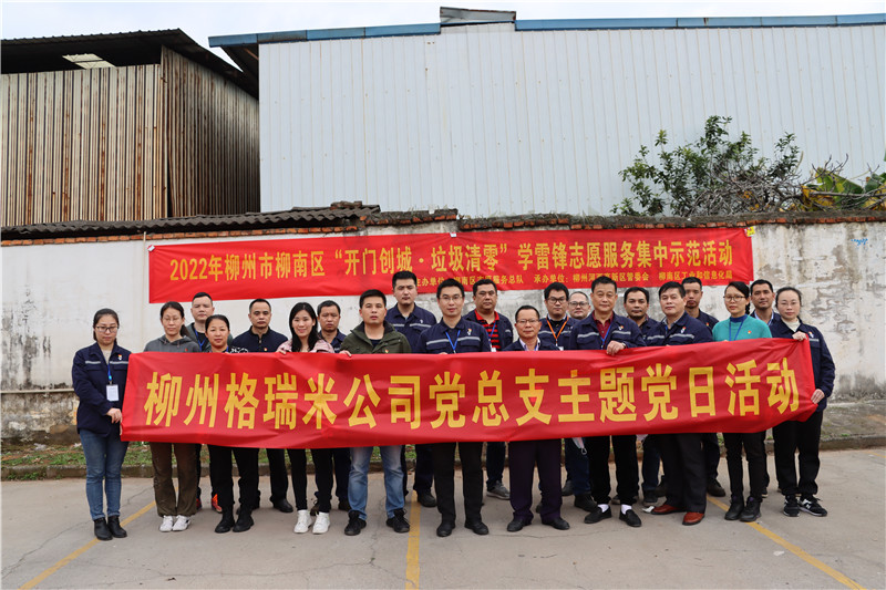 3月4日,柳州格瑞米公司黨總支開展“學雷鋒”主題黨日活動,組織20余名黨員參加柳州市柳南區“開門創城·垃圾清零”學雷鋒志愿服務集中示范活動及香桃社區“我為群眾辦實事”志愿服務進社區活動。