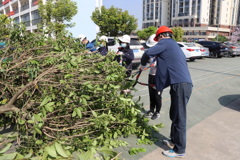 活動中,活動人員分為修剪、搬運、種植三個小組,大家分工協(xié)作,干勁十足。修剪組負責對樹苗枝葉進行修剪,確保樹苗種植后的快速出新芽。搬運組肩挑臂抬手拖,負責將樹苗運送到已挖好的樹坑。種植組負責對樹苗進行培土種植,他們有的揮鍬鏟土,有的扶正踩實,澆水灌溉。三個小組緊密合作,每道工序緊密銜接、配合默契,活動現(xiàn)場熱火朝天,熱情高漲。