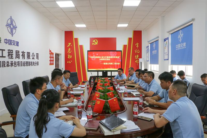 盛夏酷暑,驕陽(yáng)似火。平南路機(jī)電項(xiàng)目施工如火如荼,正全力沖刺保通車(chē)任務(wù)。7月30日,智通公司第二黨支部到平南路機(jī)電項(xiàng)目開(kāi)展“守初心擔(dān)使命 奮力打贏(yíng)保通車(chē)攻堅(jiān)戰(zhàn) ”主題黨日活動(dòng),推進(jìn)黨建文化進(jìn)項(xiàng)目,充分發(fā)揮“交投先鋒+機(jī)電項(xiàng)目攻堅(jiān)突破”團(tuán)隊(duì)先鋒和尖刀兵作用,凝聚力量、提振士氣,確保順利完成工程項(xiàng)目建設(shè)目標(biāo)和“保通車(chē)”任務(wù),全力打造廉潔工程、安全工程和品質(zhì)工程。機(jī)械院黨委書(shū)記、董事長(zhǎng)王吉才以智通公司第二黨支部普通黨員的身份參加活動(dòng)。