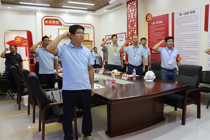 “我志愿加入中國共產黨,擁護黨的綱領,遵守黨的章程……”活動在重溫入黨誓詞中拉開序幕,全體黨員同志有序列隊肅立,右手握拳,面對黨旗莊嚴宣誓,以鏗鏘有力的宣誓聲表達著永遠忠于黨、永遠跟黨走和為共產主義事業奮斗終身的決心。隨后,大家共同為第三季度入黨的同志過黨員政治生日,進一步增強黨員的榮譽感和責任感。