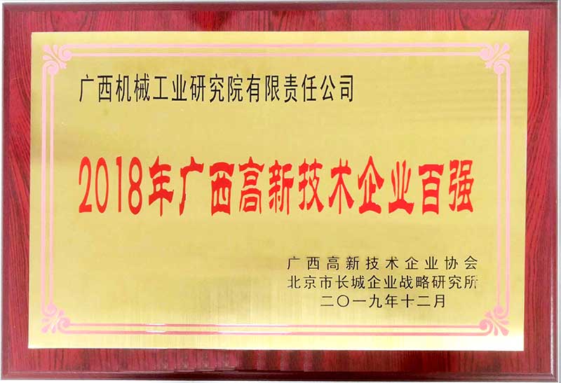 12月24日,廣西高新技術企業百強、創新能力10強、創新活力10強企業榜單發布會在南寧舉行,廣西機械工業研究院有限責任公司從全區的1200家高新技術企業中脫穎而出,位列廣西高新技術企業百強第29。