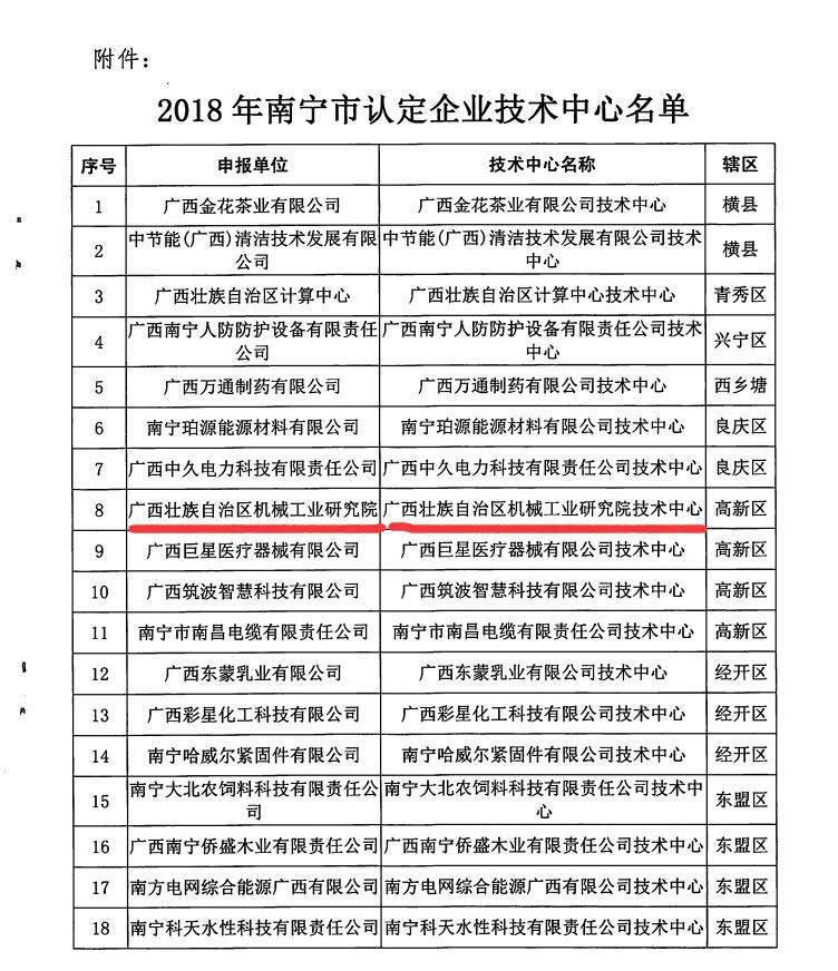 近日,南寧市工業和信息化委員會公布了2018年南寧市企業技術中心名單(南工信科技〔2018〕15號),我院登榜其中,喜迎2019年開門紅。