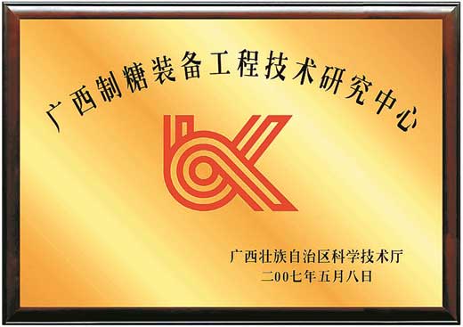 “廣西制糖裝備工程技術研究中心”牌匾