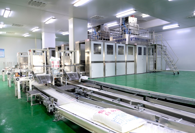 全自動包裝生產線與傳統生產線相比,可以使20人的包裝班組降到4人,為糖企節約近5倍的人工成本,廣泛用于制糖、食品、飼料、化肥、化工、醫藥、納米碳酸鈣等行業,受到客戶一致好評,尤其是為廣西千億元支柱產業的糖業的包裝環節實現了機器換人,為各大糖企節約了大量的勞動力和成本。
