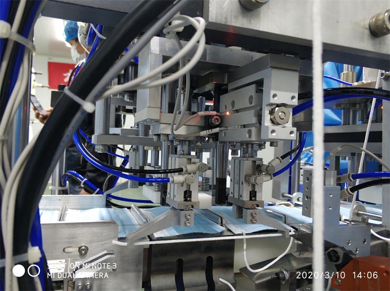 在凌洪明看來,設備一天無法正常轉動生產,抗疫物資就要晚一天才能對外輸送,用自身本領讓生產防疫物資的設備正常轉起來是“疫”不容辭的責任,也是為疫情防控做點滴貢獻。經過詳細詢問現場工人、開機觀察設備運行情況、多次檢查和調試后,凌洪明查找出了超聲波沾合氣缸氣壓不足導致耳帶粘連不牢易脫落、零部件易松動、送料不穩定等問題,并一一給出解決方案。醫藥公司對凌洪明表示誠摯感謝和高度贊賞,并希望后續能與機械院公司簽訂合作協議,為該公司提供技術服務和培訓。