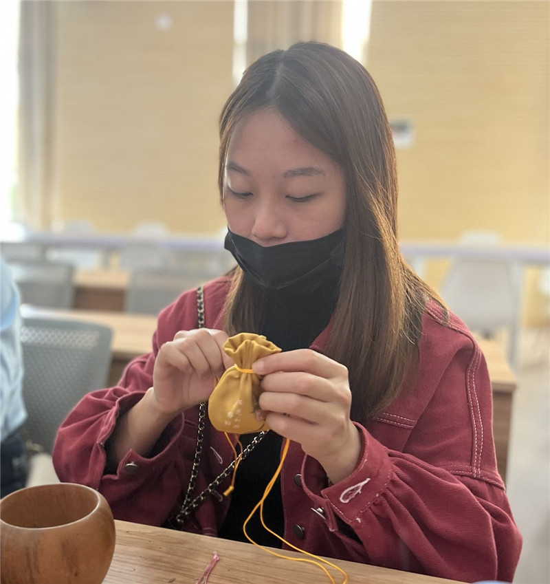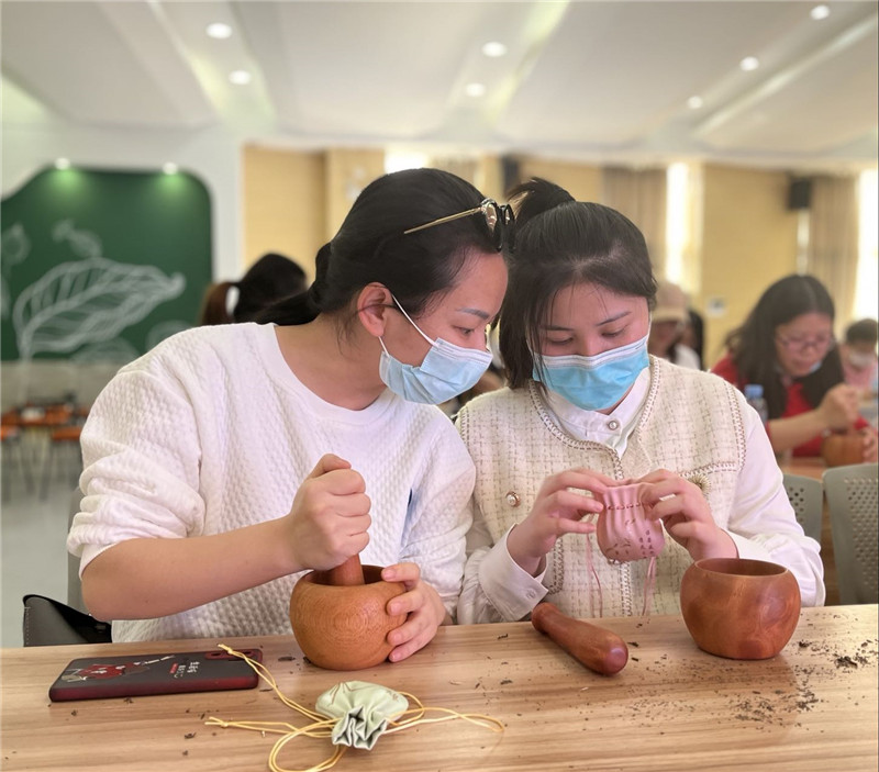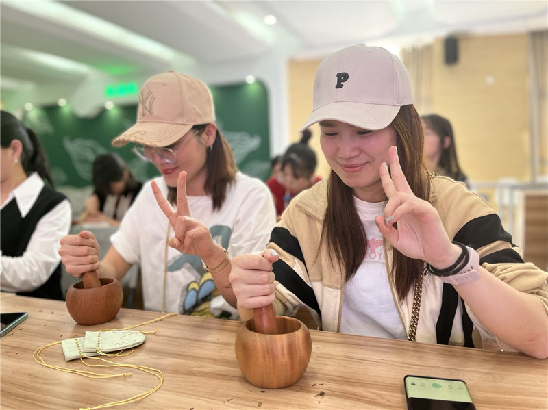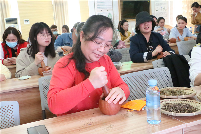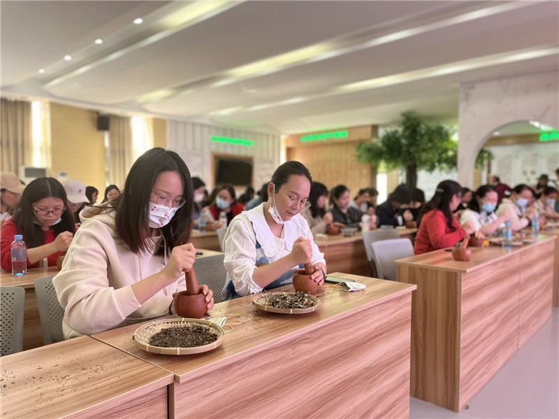 “吳茱萸芳香去濕、疏肝理氣,薄荷可以提神醒腦,大家隨身佩戴,可以在人體周圍形成高濃度的小環(huán)境......”在指導(dǎo)老師的解說中,女職工們一起認(rèn)識了艾葉、薄荷、紫蘇、吳茱萸、花椒等草藥,以及每種草藥的獨(dú)特功效,并通過動手實踐,制香、聞香,更生動地認(rèn)識藥用植物與養(yǎng)生知識、傳統(tǒng)文化的關(guān)聯(lián)。