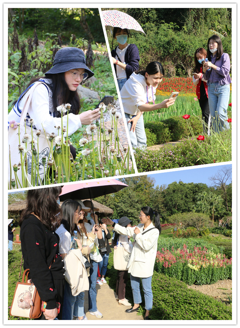 植物園現(xiàn)存藥用植物8900多種,是名符其實的“藥用植物王國”,三月的植物園內(nèi)草木葳蕤,為麗人踏青提供好去處。跟隨講解員的腳步,一行人穿過陰生藥物區(qū)、藤本植物區(qū)、植物隧道和草部等區(qū)域,中醫(yī)文化、植物園景觀特點在講解員的動人解說中緩緩鋪展開來,種類繁多的植物的生長習(xí)性、故事傳說、藥理藥效,讓大家沉浸其中,時而發(fā)聲詢問,時而賞花拍照,興趣盎然,受益良多。女神們還品嘗了植物園的特色藥茶--絞股藍(lán)茶,了解其養(yǎng)生作用及沖泡方法。