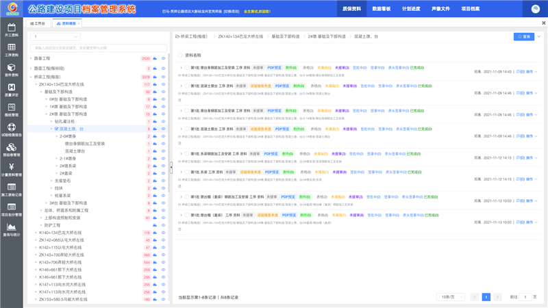 系統(tǒng)設(shè)置了管理性文件上傳、質(zhì)保資料填報(bào)與簽批、聲像文件采集等模塊,具有較強(qiáng)的實(shí)用性。一是關(guān)聯(lián)度高,檔案管理系統(tǒng)可與各業(yè)務(wù)系統(tǒng)(計(jì)量、征拆、試驗(yàn)等系統(tǒng))實(shí)現(xiàn)集成溯源,接收數(shù)據(jù)文件,最終匯總形成案卷總目錄進(jìn)行檔案封裝。二是可實(shí)現(xiàn)資料的快速簽批,參建單位質(zhì)保資料全部實(shí)現(xiàn)電子簽章線上簽批,有效提高審批效率。三是質(zhì)保資料與現(xiàn)場(chǎng)施工進(jìn)度相同步,其中標(biāo)段質(zhì)保資料模塊、總監(jiān)辦抽檢資料模塊是用戶(hù)使用頻次最多的核心模塊,按照用戶(hù)反饋不斷加深優(yōu)化,通過(guò)wbs(單位分部分項(xiàng))智能參數(shù)化劃分功能,項(xiàng)目資料填報(bào)從手動(dòng)新增,變成系統(tǒng)自動(dòng)批量生成,效率提升75%以上。除資料填報(bào)效率高的同時(shí),目前系統(tǒng)采用法律認(rèn)可的電子簽章技術(shù),通過(guò)標(biāo)準(zhǔn)化數(shù)據(jù)接口,對(duì)oa、征拆、計(jì)量、質(zhì)量等多個(gè)系統(tǒng)數(shù)據(jù)實(shí)現(xiàn)一鍵歸檔,效率提升60%以上,極大提高了的工作效率,有效降低了參建單位的人力成本、時(shí)間成本、管理成本。四是系統(tǒng)已實(shí)現(xiàn)一鍵評(píng)定、自動(dòng)預(yù)組卷、線上案卷封裝等功能;五是實(shí)現(xiàn)公路建設(shè)項(xiàng)目電子檔案驗(yàn)收管理系統(tǒng)的應(yīng)用;六是運(yùn)維團(tuán)隊(duì)能夠及時(shí)響應(yīng),由公路、檔案、信息化組成的專(zhuān)業(yè)項(xiàng)目團(tuán)隊(duì)線上全年度24小時(shí)維護(hù),線下按階段定期上門(mén)跟蹤回訪。