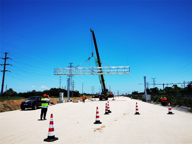 桂柳四改八ETC門架工程項目首個4+1門架順利吊裝