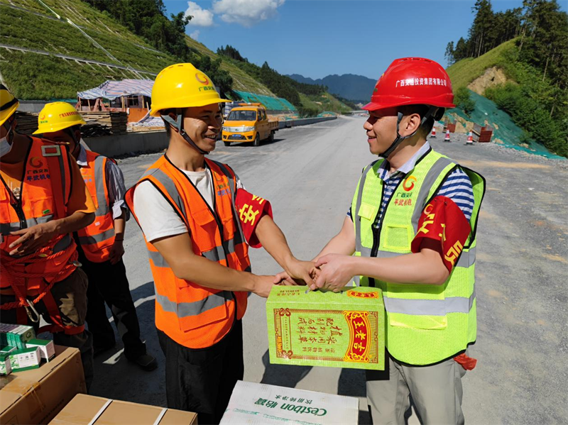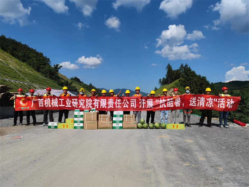 在桂平3號隧道施工現場,平武機電項目部開展“抗酷暑,送清涼”活動,為現場施工勞務人員發放王老吉、西瓜、夏桑菊涼茶、以及藿香正氣水等防暑物資,叮囑一線人員要增強自我保護意識,嚴守操作規程,注重勞逸結合,在做好防暑的前提下保證工程進度和質量,確保高溫季節的生產安全和身體健康。
