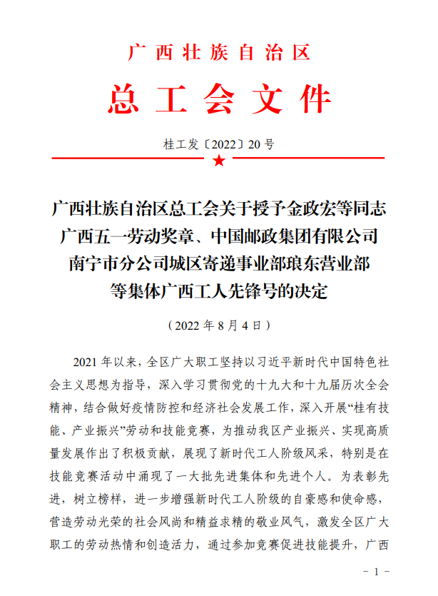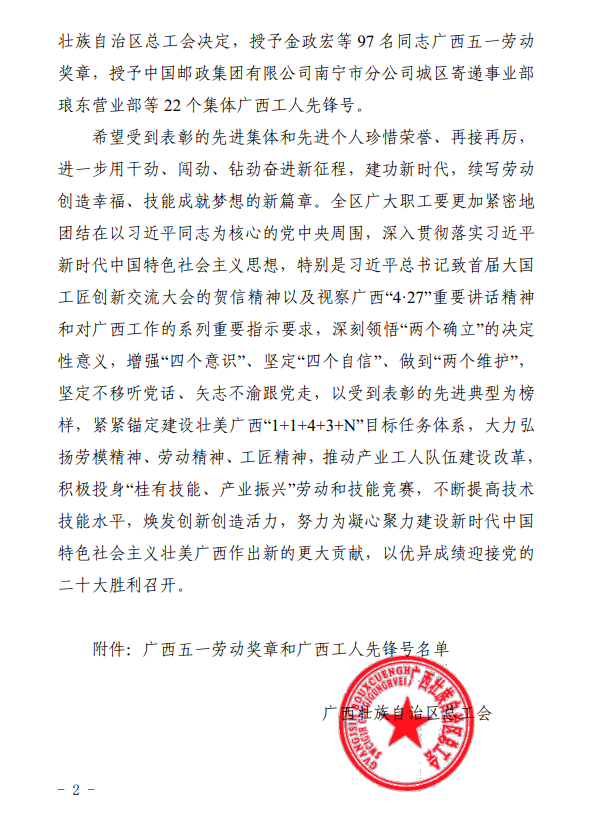 【喜報】機械院梅開二度 再次榮獲廣西五一勞動獎章