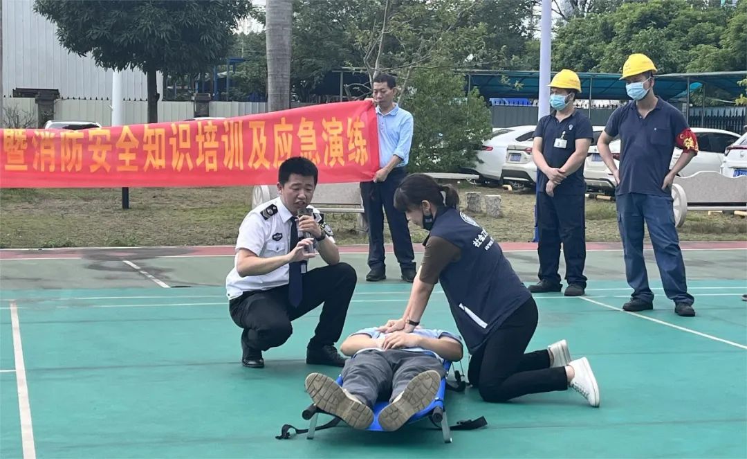 隨后,警報聲響起,本次演練在逃生通道釋放大量濃煙模擬辦公樓火災現場,安全管理部組織全體人員進行緊急疏散,通過實景模擬切身感受,讓員工們更好地學習掌握在火場中基本的逃生方法和火場避難技巧。在疏散至空曠地帶后,授課老師還詳細演示擔架救援的正確方式、CPR心肺復蘇操作關鍵要點,指導大家如何正確搶救傷員。參演人員現場學習了滅火彈、滅火器等消防設備的正確使用方法。