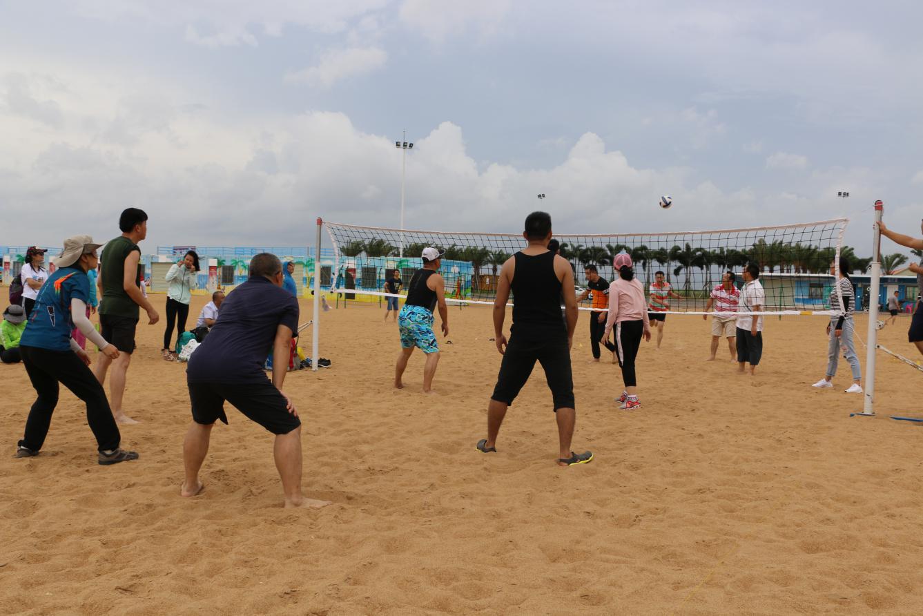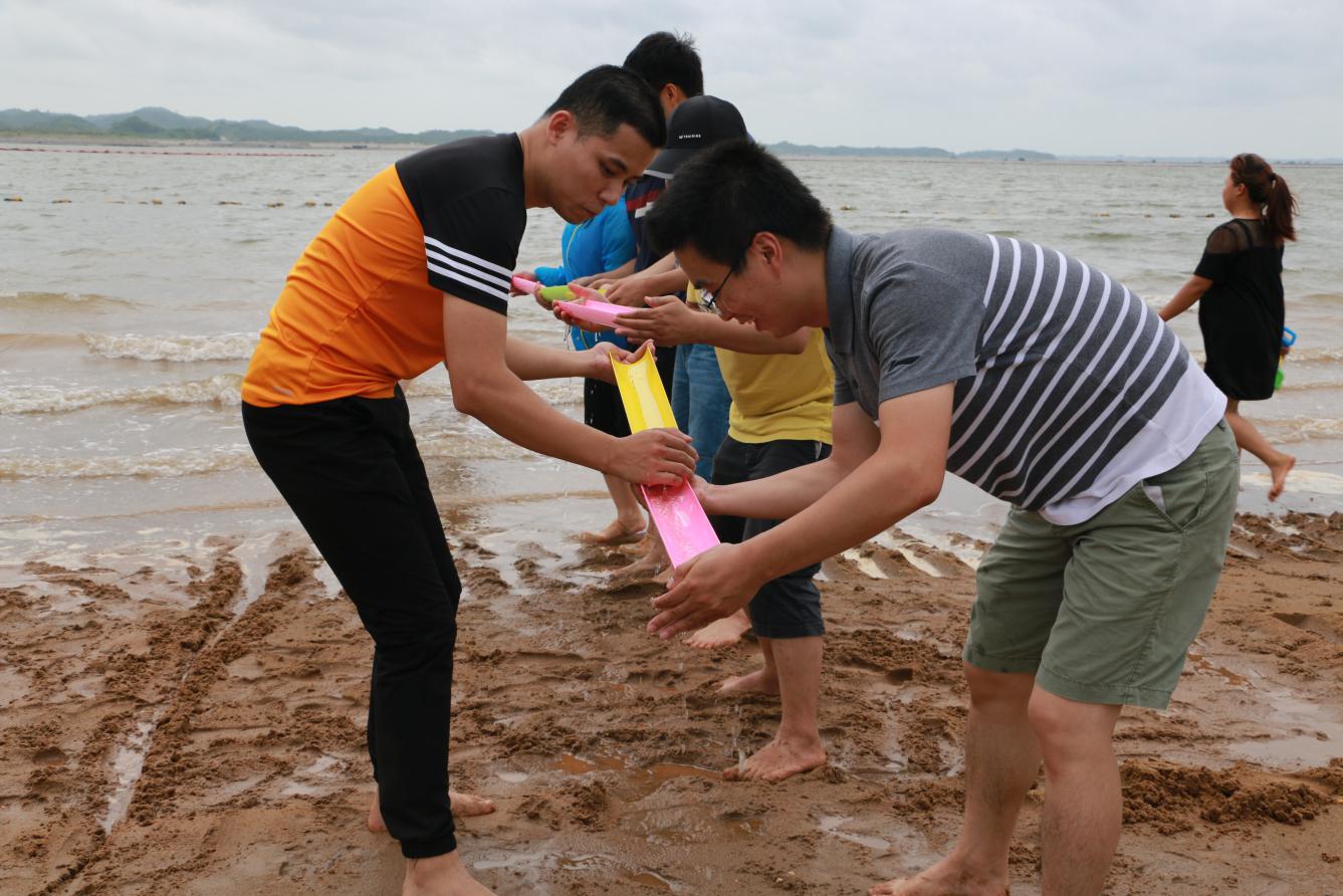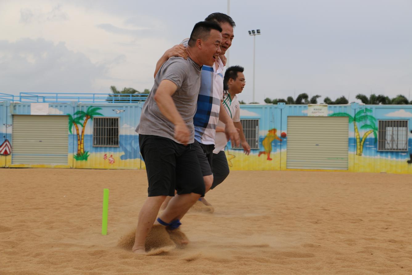拓展活動分為沙灘排球、兩人三足、盛水接力等3個內容,旨在鍛煉員工的身體素質,增強員工對團隊的參與意識,促進員工之間的溝通交流。2017年世界沙灘排球巡回賽在茅尾海沙灘激情開賽,所以我們的第一個拓展活動內容當然也先從我們院最有群眾基礎的傳統項目排球開始。在大伙的開場熱身之后,沙灘排球在歡呼聲中拉開了帷幕,場上的選手扣球廝殺,場外的小伙伴們也紛紛吶喊助威。從沙灘排球到后面的兩人三足、盛水接力活動,大家從剛開始的懼怕烈日有點畏手畏腳到后面的完全放開融入到團隊活動中,從磨合到默契,發揚同舟共濟的精神群策群力,無論是參與活動的隊員還是歡呼圍觀的群眾都是全情投入,現場的氣氛和沙灘上的熱浪一樣熱火朝天,圓滿達成素質拓展培訓活動的預期目標。