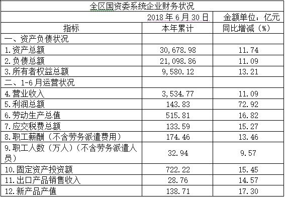 全區(qū)國資委系統(tǒng)企業(yè)2018年1-6月經(jīng)濟運行簡況