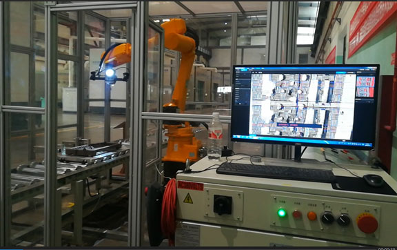 為滿足快速獲取生產零部件精確檢測結果的需求,全自動機器人在線檢測系統集成了機器人、自動識別系統、光學三維掃描系統、計算機圖像處理系統、滾筒輸送線及托盤等多種技術,實現自動識別輸送線上零部件類型,并匹配相應軌跡程序驅動機器人對零部件表面結構進行光學三維自動掃描、自動拼接,從而自動獲取零部件完整三維點云數據的系統,具有不貼點、不噴粉、全自動、高精度、高效率、方便性、穩定性的特點。